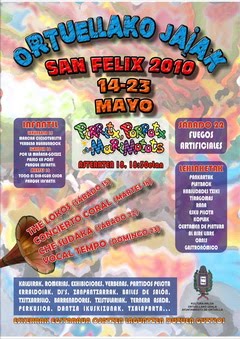 En este enlace podréis ver el programa de fiestas http://ortuella.over-blog.es/categorie-11422241.html que comienza a las 18:30h. el PASACALLES con la fanfarria SUGARRI.