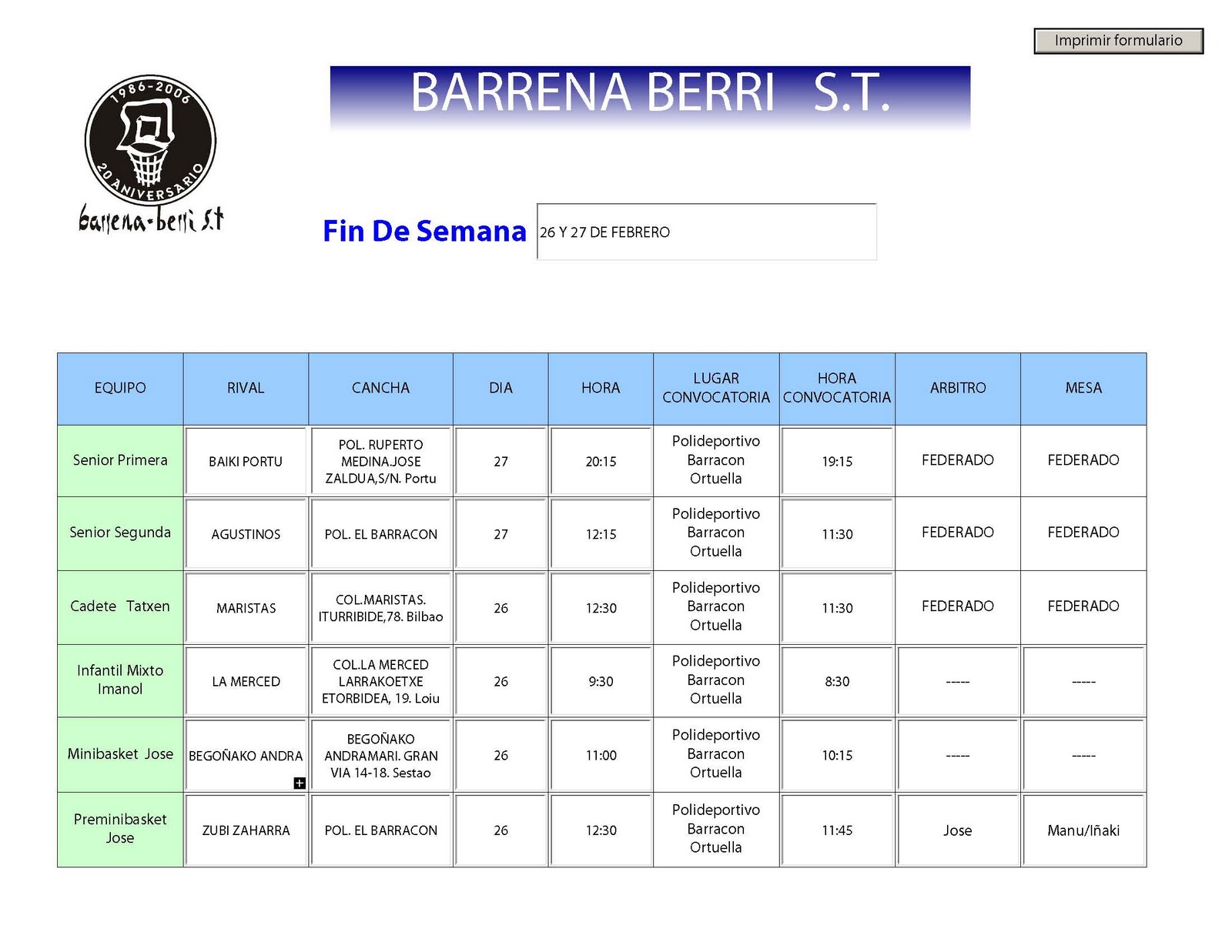 A las 12:30, juegan los CADETES en Bilbao y los PREMINI en el polideportivo Ortuella, siendo estos últimos los únicos que lo hacen en casa.