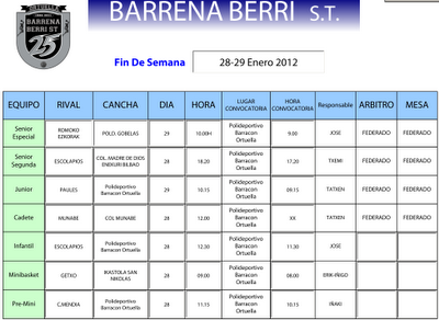 Partidos fin de semana Barrena Berri 28 y 29 enero 2012