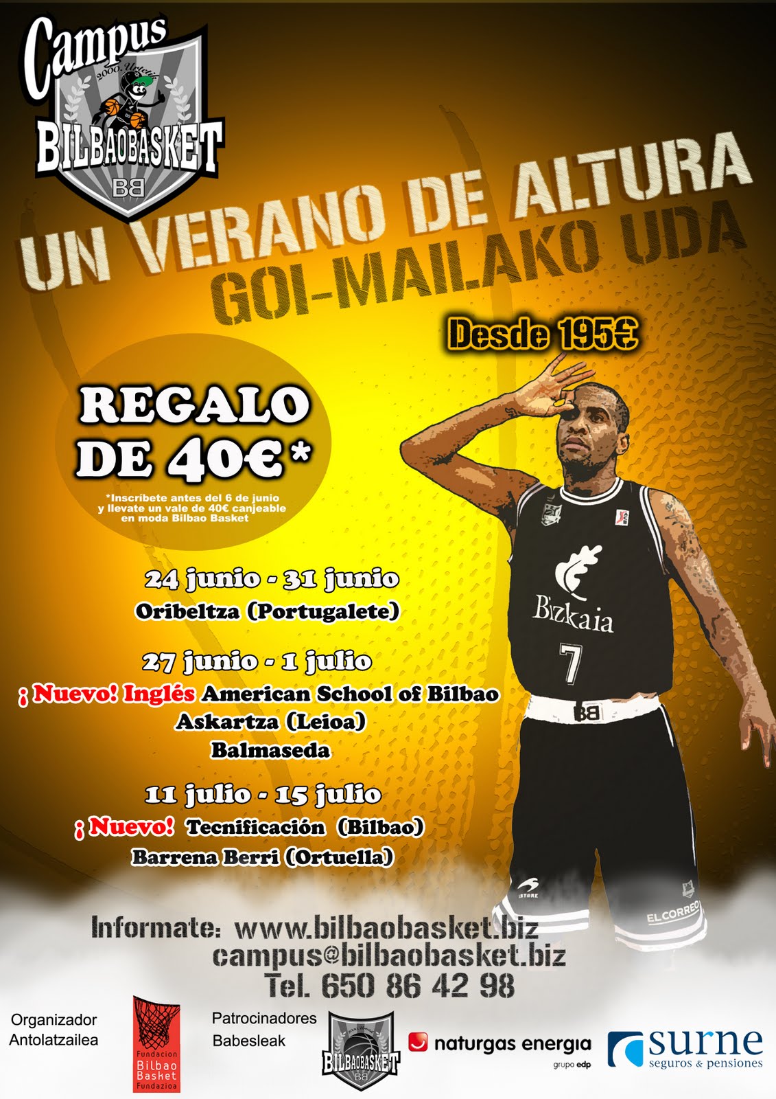 Como podeis ver, con respecto al año pasado se han reducido el número de sedes. Desde el Bilbao Basket se premia a nuestro club y a nuestro pueblo al mantener un año más el campus en Ortuella.